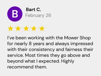 Preventative maintenance is an important part of owning a lawn mower. Our 16-point comprehensive preventative maintenance service, performed by our experienced technicians, keeps your lawnmower performing as it should. Let us help you with your equipment service needs.