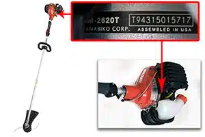 String Trimmer model numbers are on the primary decal with a serial number located on the power head.