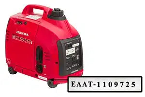 Honda generator model numbers are featured clearly on decals on the frame panels. Complete model and serial numbers are located on white decals. This decal is located on the frame. Search by model number and verify serial numbers when ordering parts and accessories for your generator.