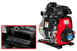 Honda water pump model numbers are featured clearly on decals on the frame panels. Complete model and serial numbers are located on white decals. This decal is located on the frame. Search by model number and verify serial numbers when ordering parts and accessories for your pump.